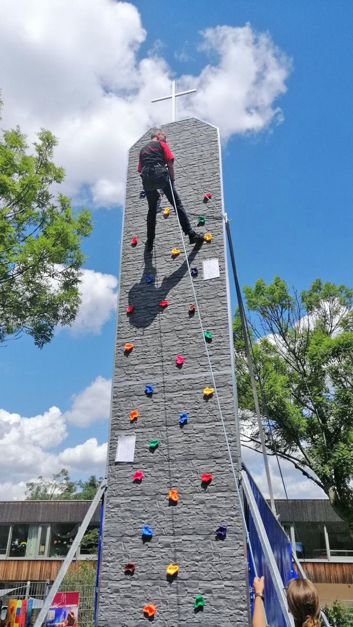 Ein Kletterturm mit Glocke und einem Kreuz? Dahinter verbirgt sich die mobile Kletterkirche der Kirchgemeinde Dresden-Süd. Sie ist 7,6 Meter hoch und auf einem Hänger montiert. Das Ev.-Luth. Kirchspiel Dresden Süd lädt alle Interessierten ein, sich am 27. Juli, ab 10.30 Uhr beim Parkgottesdienst im Schlosspark Nöthnitz selbst ein Bild davon zu machen und bis zum Gipfel zu klettern. Auch ein gemeinsames Picknick ist geplant.