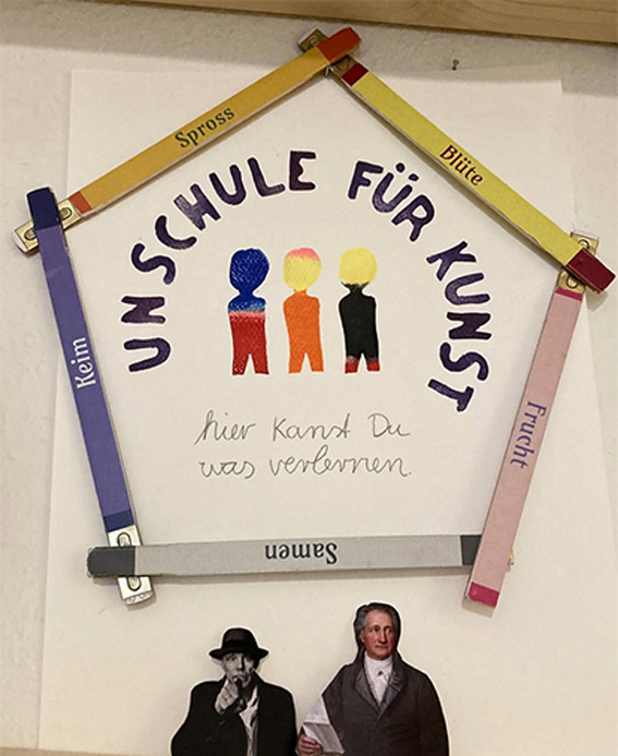 Unter dem Motto: „Hier kannst Du was verlernen“ geht es darum, tiefsitzende Überzeugungen über die eigene Unfähigkeit und kreative Blockaden über Bord zu werfen. Das Fundament der Unschule stützt sich auf die ästhetische Erziehung von Schiller und Goethe sowie auf konkrete pädagogische Ideen von Joseph Beuys. Statt des klassischen Frontalunterrichts werden in Ringgesprächen Gedanken erarbeitet, die von den Teilnehmenden unmittelbar künstlerisch „zur Welt gebracht“ werden – sei es als Tanz, Bild, Lied oder Text. Am Ende gibt es ein Zertifikat, das zu absolut nichts nütze ist.